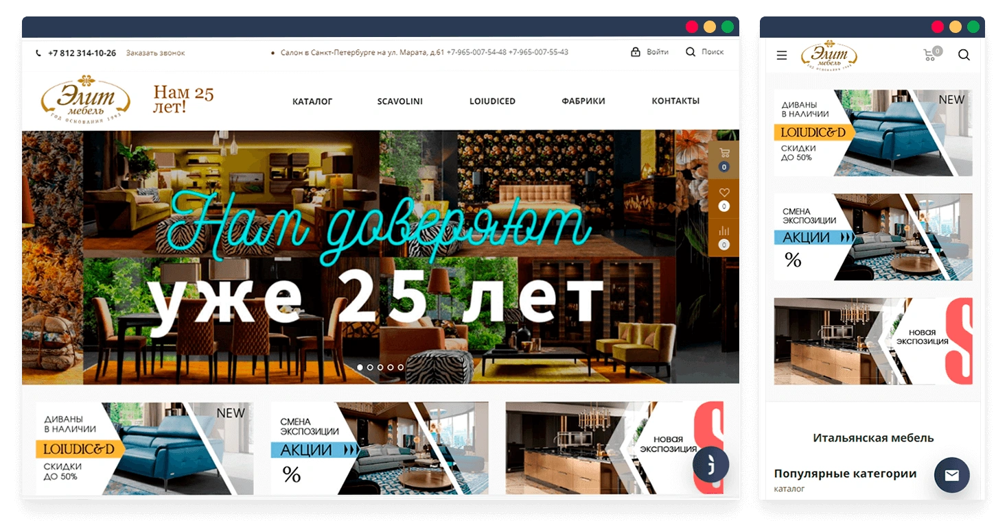 Цель: Создание интернет-магазина элитной мебели с индивидуальным дизайном и удобной навигацией. Сделать сайт конкурентоспособным, улучшить репутацию и продающие качества, повысить трафик и конверсию, вывести позиции по ключевым конкурентным запросам в ТОП 10, приумножить количество заказов и продаж.