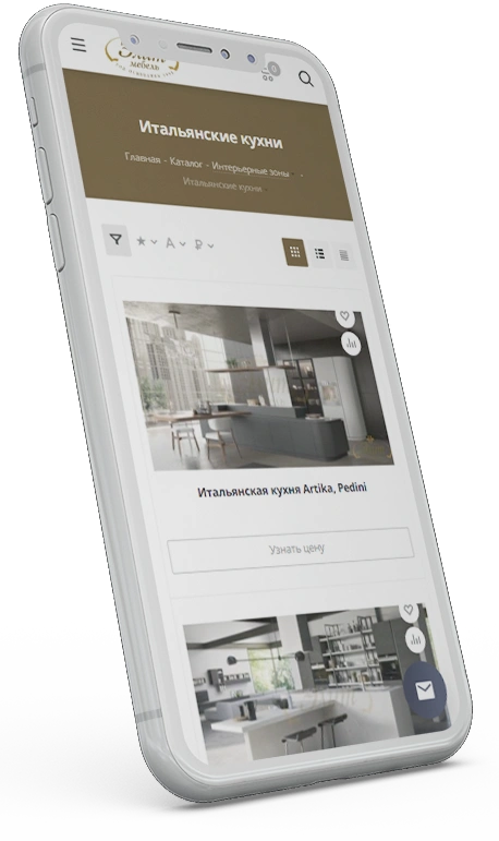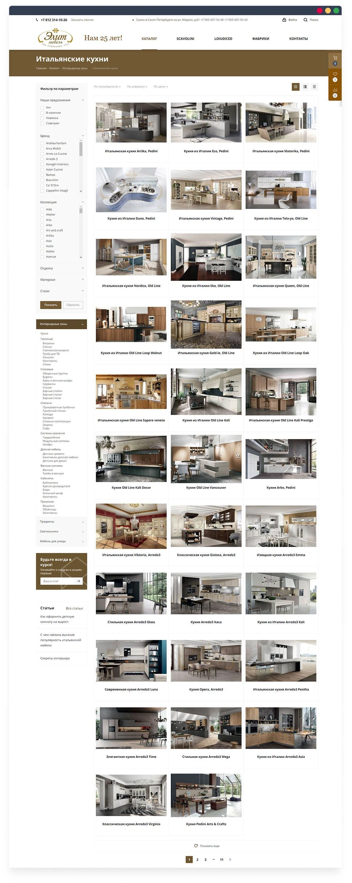 Настроили СЕО умного фильтра. В разделе «Бренды» доступен список из 162 итальянских производителей мебели. При переходе на детальную страницу бренда клиент может наблюдать отсортированные товары по выбранному производителю.