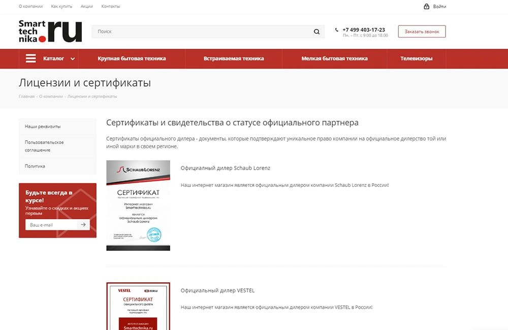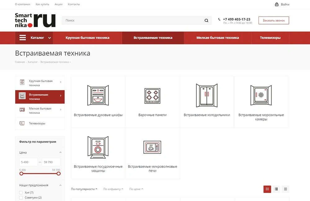 • Сайт интернет-магазина бытовой техники