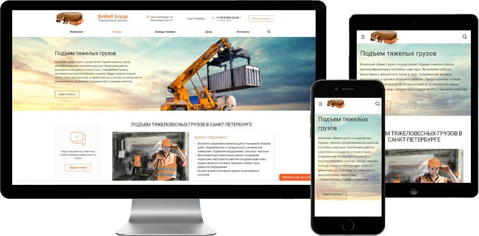 Цель: создать сайт по предоставлению такелажных услуг с соответствующим дизайном, удобным интерфейсом и понятной навигацией. Сделать ресурс конкурентоспособным, подготовить к дальнейшему продвижению в поисковых системах, в том числе и по регионам. Качественно представить услуги и тщательно проработать мобильную версию сайта.